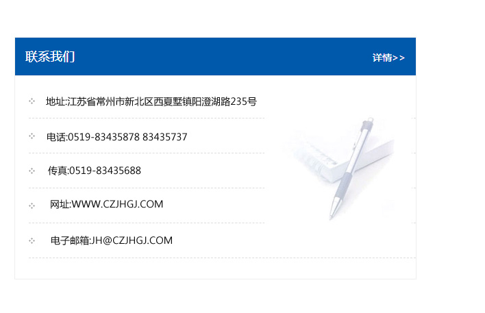 地址:常州市新北區友邦商務大廈1幢16、17層  電話:0519-85101652  傳真:0519-85112595  郵編:213022  網址:www.cz-jiayue_cn.hjgssc.com  郵箱:xiajifengaa@163.com